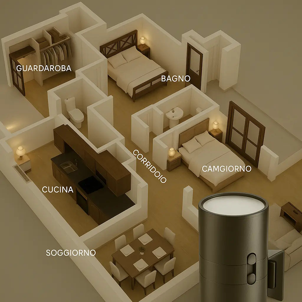 CasaLuce trasforma angoli bui e corridoi spenti in spazi caldi e accoglienti, con una soffusa luce ambrata.